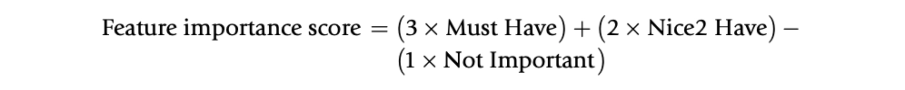 Important score 가 높은 기능들에 대해 모두 더해줌 (⇒ 제품 점수)