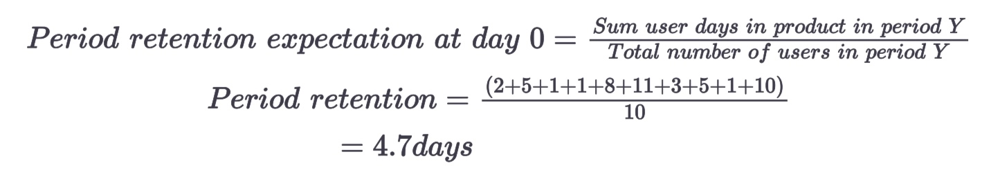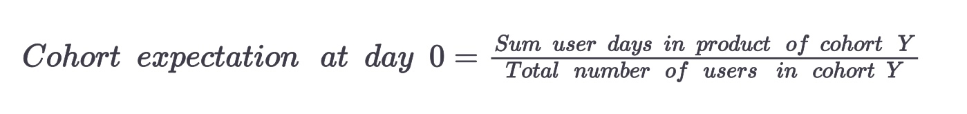 = 코호트 Y가 서비스에 머문 기간 / 코호트 Y의 전체 유저 수