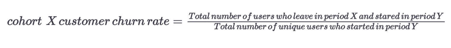 하지만, 이 경우 분자(Y기간에 제품을 떠난 총 사용자 수)는 명확하지만, 분모(Y기간에 유입된 총 유저 수)가 무엇인지 명확하지 않습니다. 즉, ‘Y기간’을 어떻게 정의해야하는지 모호합니다. 기간의 시작과 끝을 어떻게 선택하는지에 따라 완전히 다른 추정치를 얻을 수 있습니다. 특정 기간에 가입하고 탈퇴하는 일부 사용자를 놓칠 수도 있고, 극단적인 경우에는 모든 사용자가 기간 내에 이탈할 수도 있습니다.